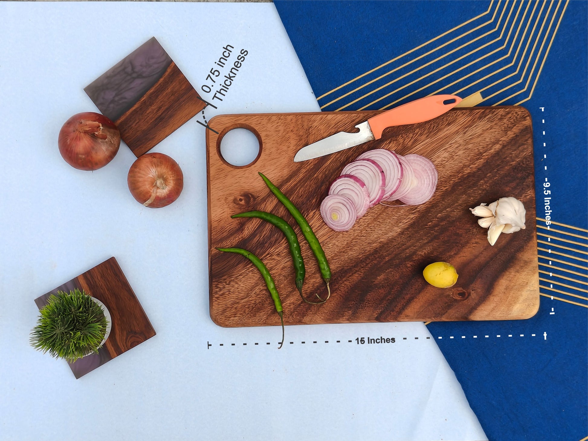 Woods And Knots Acacia Wood Chopping Board – Knife-Friendly & Multi-Purpose Cutting Board (Design 2) as part of our collection was custom made. There will be a 10% change to the color of the wood and resin. The WoodsAndKnots team will finalize the tiniest of details with you.