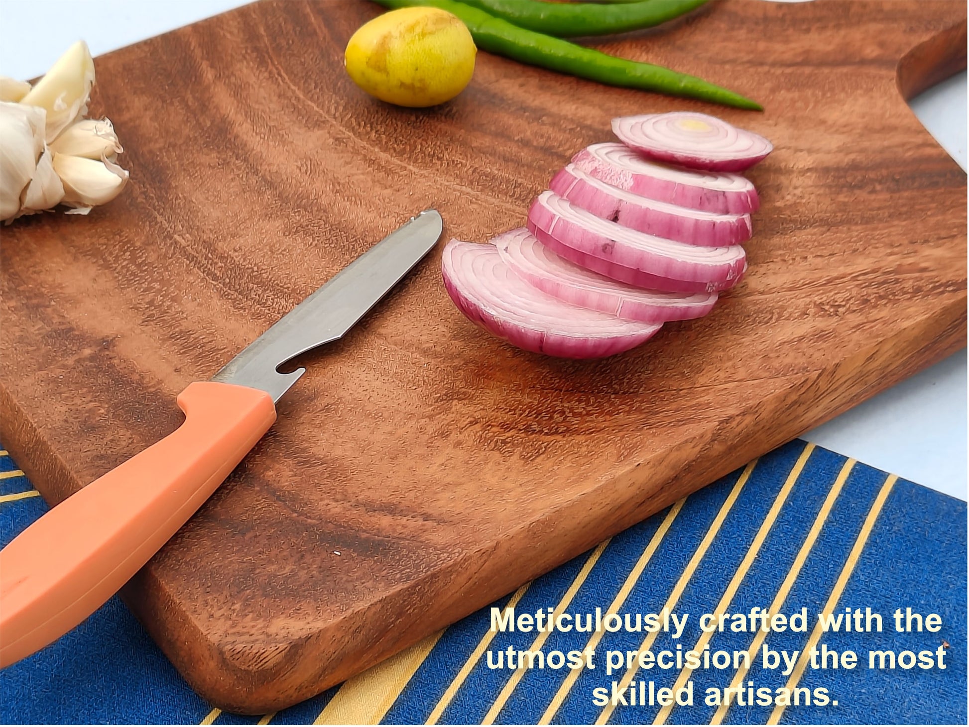 Expertly designed with knife-friendly properties, the Woods And Knots Acacia Wood Chopping Board is a versatile and durable addition to any kitchen. Made from high-quality acacia wood, it can handle all your cutting and chopping needs while protecting your knives. Say goodbye to scratches and hello to a seamless cooking experience.
